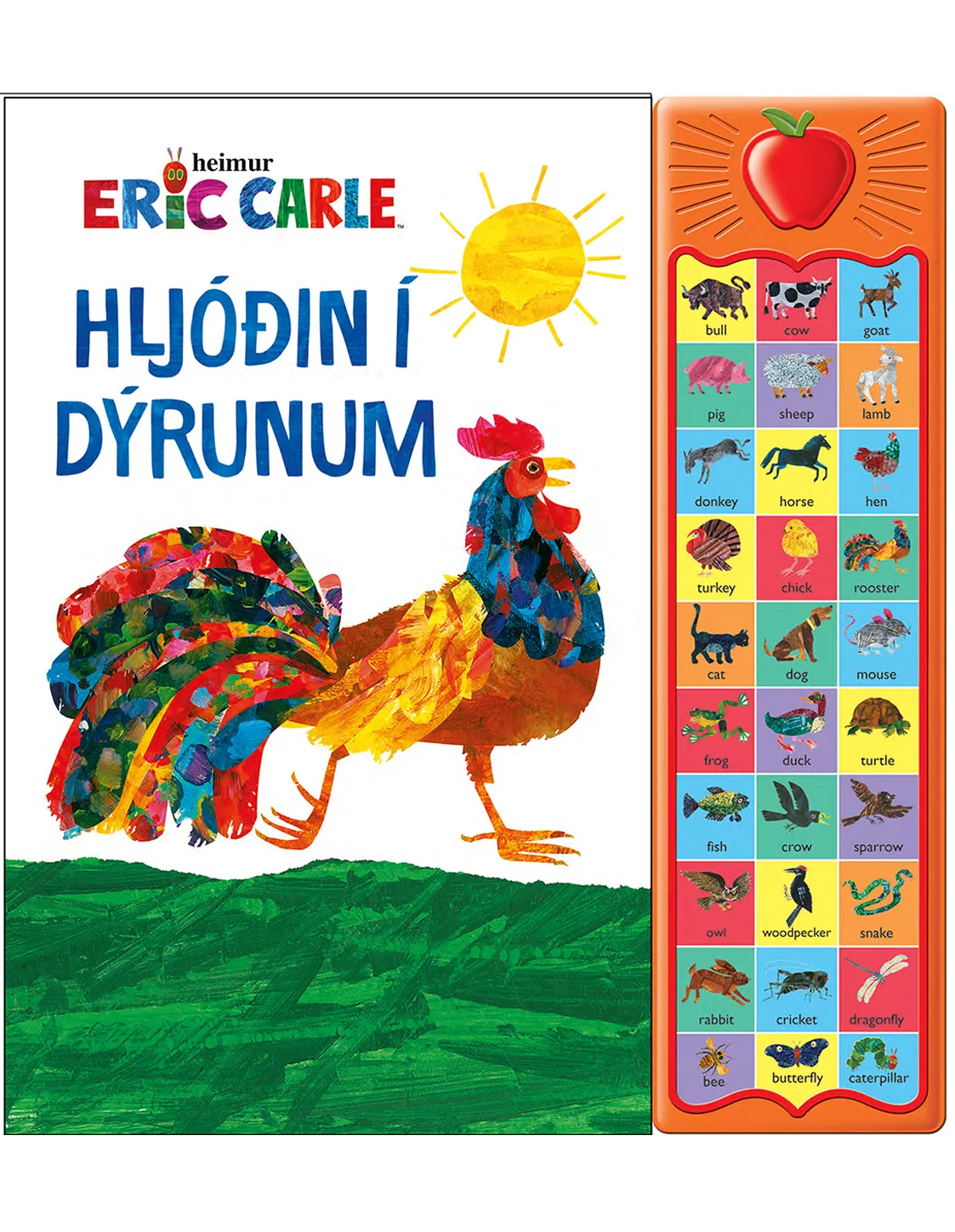Með því að þrýsta á hnappana má heyra 30 dýrahljóð. Bækur Eric Carle njóta mikilla vinsælda víða um heim.