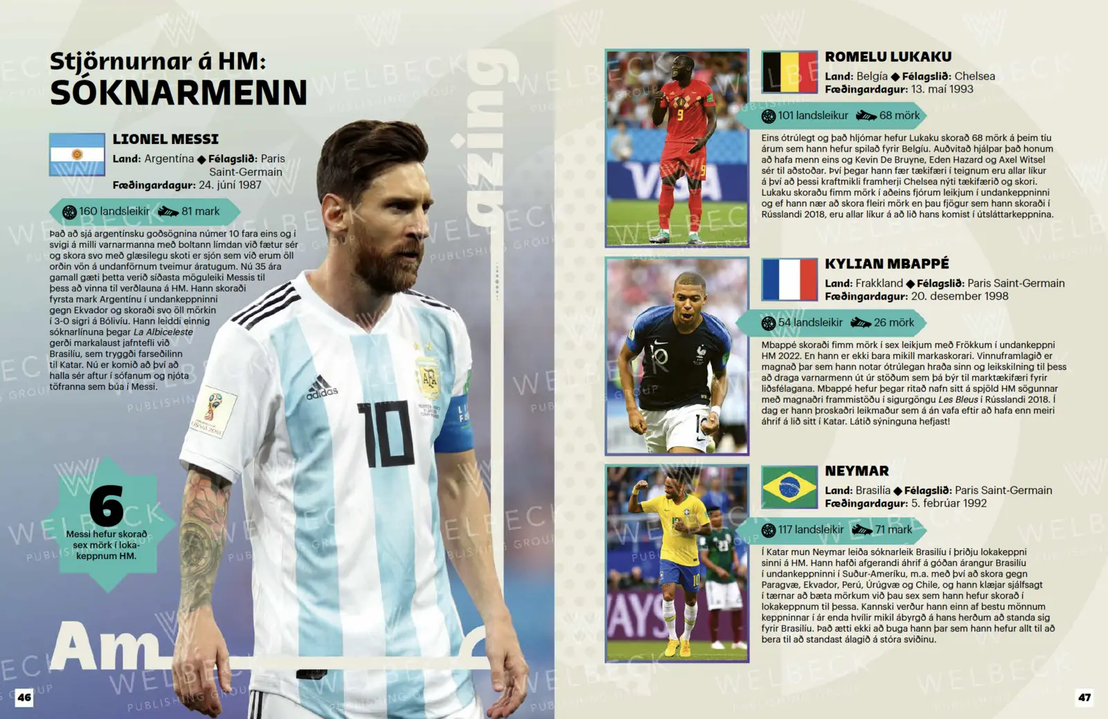 Lokakeppni HM 2022 er að hefjast! HM bókin inniheldur allt sem þú þarft til að verða alvöru sérfræðingur um HM í Katar 2022. Farið er yfir öll liðin í keppninni, allar stjörnurnar sem mæta til leiks, sögu keppninnar og nokkur af stærstu augnablikum hennar. Hverjir munu slá í gegn í Katar? Hvaða lið fara alla leið í úrslitaleikinn?