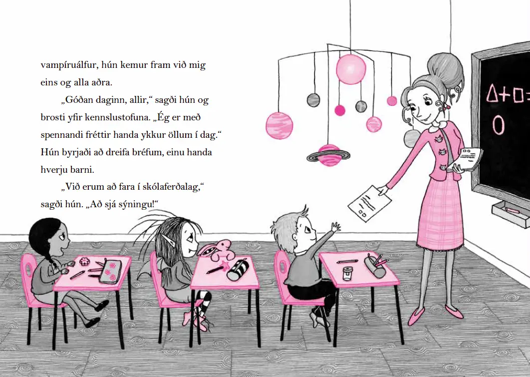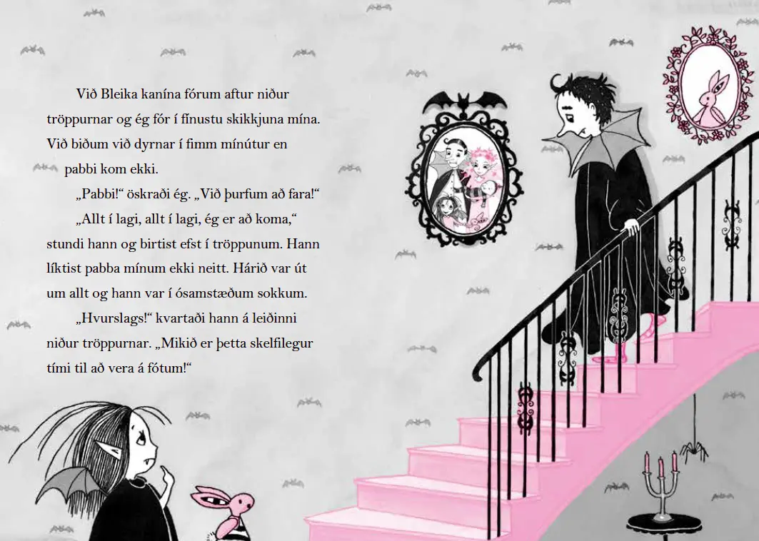 Mamma hennar er álfur og pabbi hennar vampíra og hún er blanda af þessu báðu.