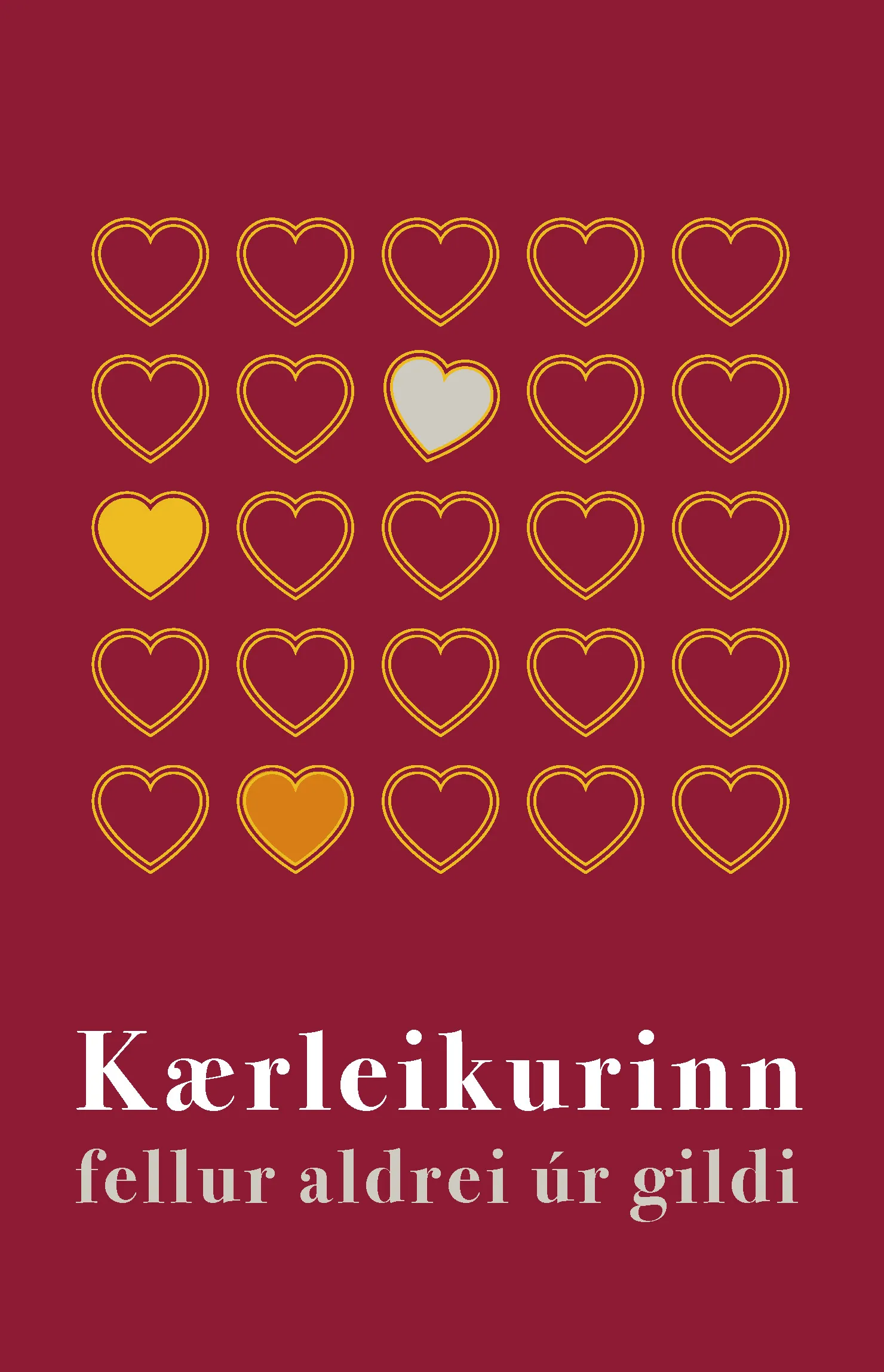 Þarftu að glæða kærleikann í þínu lífi? Þessi bók er safn af gömlum og nýjum tilvitnunum um kærleikann, fengnar úr kristinni hefð, sálmum sálmabókar og ritum Biblíunnar, úr ritum annarra trúarbragða, bókmenntum og dægurlögum. Svo virðist sem ástin og kærleikurinn sé undirtónninn í tónverki lífsins og skapar samhljóm milli allra hinna tónanna. Ástin spyr ekki um kyn eða kynferði, stétt eða stöðu. Ást og kærleikur sigra allt. Bókin Vonin sem er systurbók kom út fyrir tveimur árum. Von er á þriðju bókinni, Trú, árið 2026.