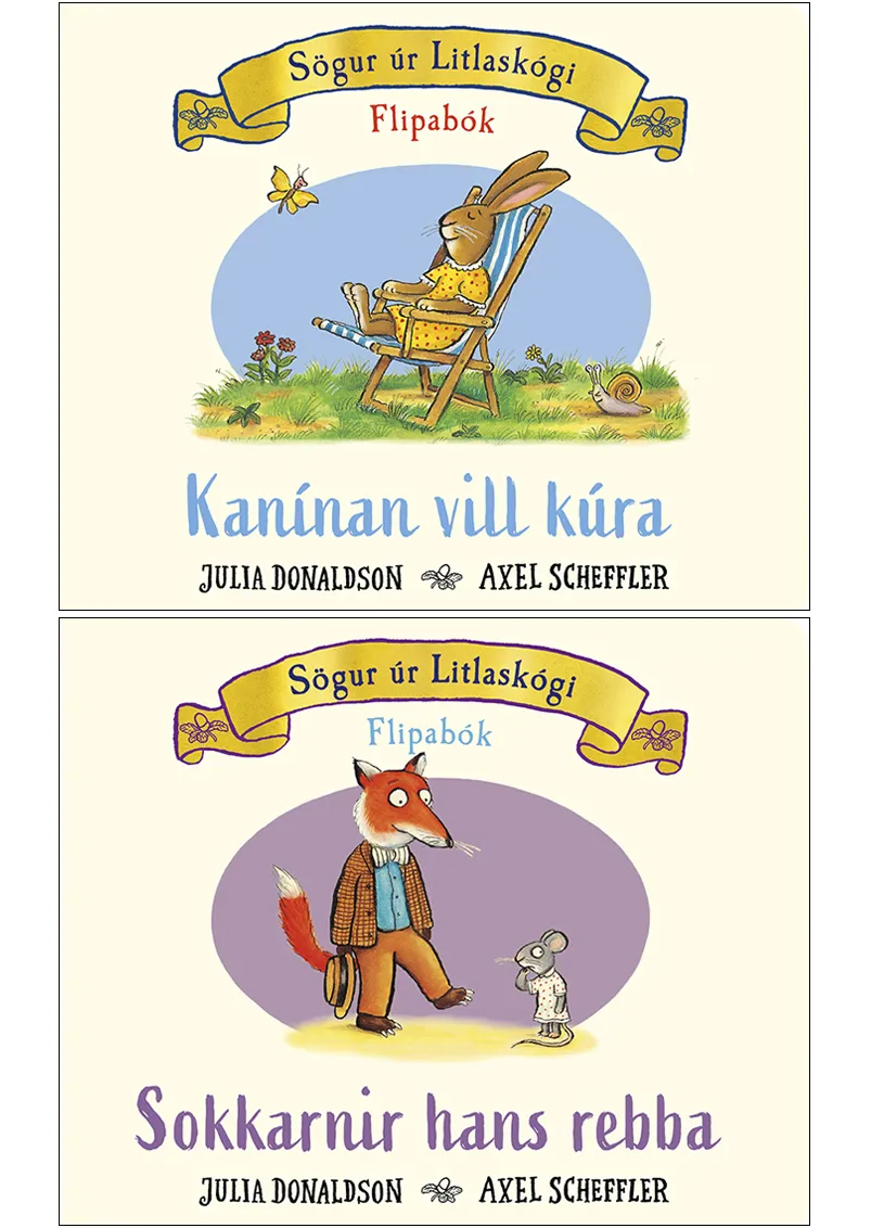 Geturðu hjálpað rebba að finna sokkana sína og kanínunni að finna stað til að fá sér lúr? Tvær vandaðar og verklegar harðspjaldabækur með flipum fyrir yngstu börnin eftir hina vinsælu höfunda Greppiklóar. Textinn er í bundnu máli.