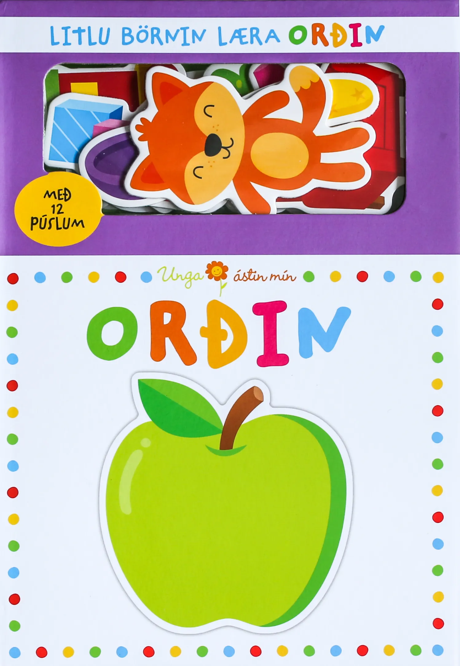 Litlu börnin læra orðin með púslkubbum. Orðapúslið sem finna má í þessari bók er skemmtilegt og fræðandi og sérstaklega hannað með yngstu kynslóðina í huga.