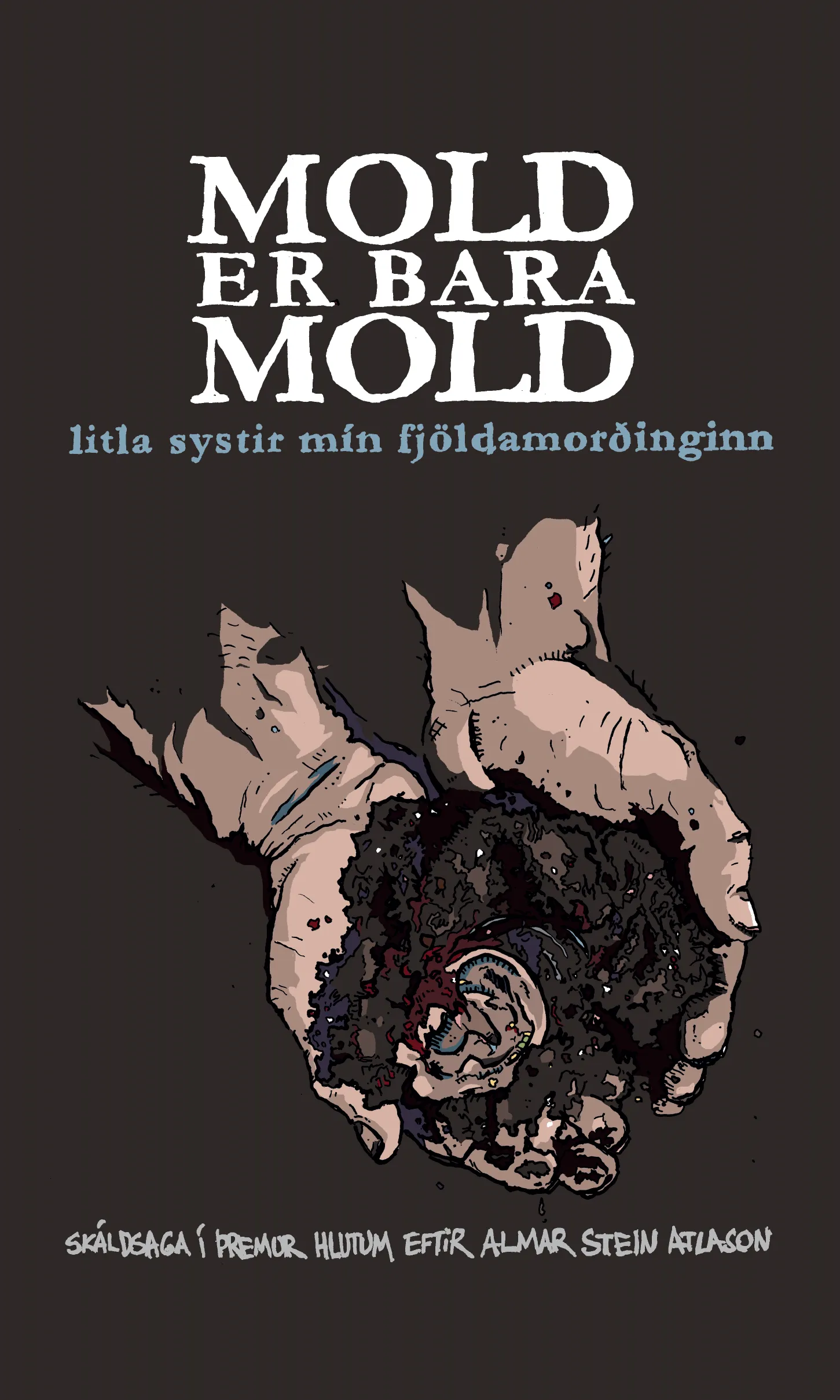 Mold er bara mold er fyrsta skáldsaga Almars Steins Atlasonar, sem er landsmönnum að góðu kunnur vegna gjörninga sinna og málverka. Hér hannar Almar kassa utan um höfundarverk sitt sem er í þremur hlutum: