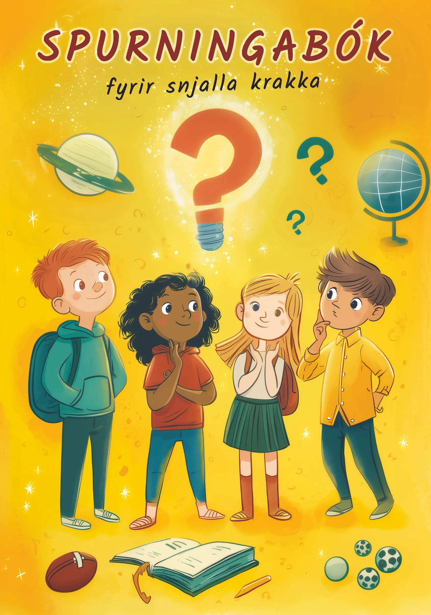 Krakkar og fullorðnir spreyta sig á skemmtilegum spurningum sem skipt er upp í efnisflokka. Í bókinni eru meira en 500 spurningar sem falla undir fjölbreytta efnisflokka. Allir ættu að geta fundið eitthvað við sitt hæfi og á sínu áhugasviði. Þau svör sem við vitum ekki lærum við, með því að fletta þeim upp í bókinni.