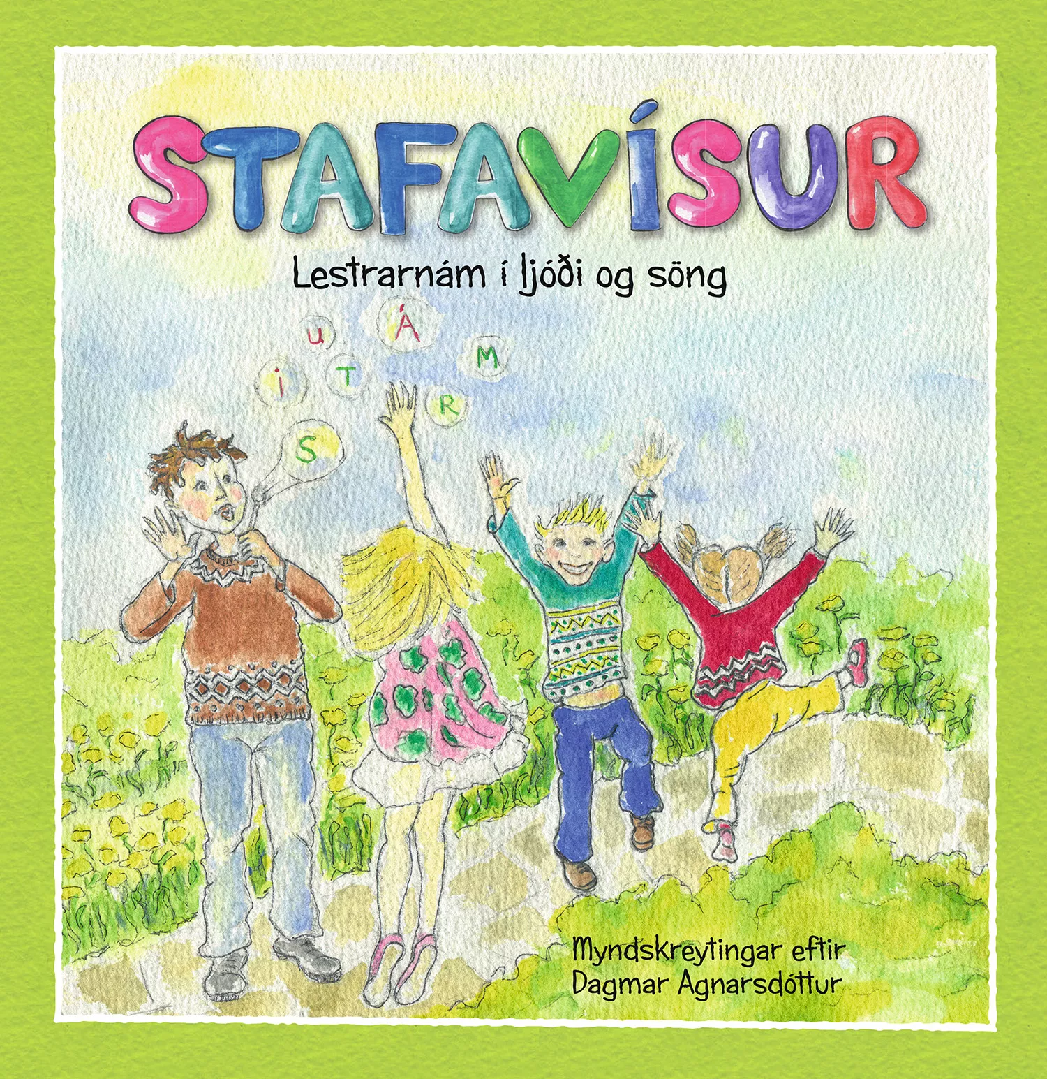 Þessi bók er ætluð leikskólabörnum og yngstu nemendum í grunnskóla. Hún er gerð til að örva lestraráhuga barna og létta þeim fyrstu skrefin á brautinni til bóknáms. Hér er ný vísa um hvern staf og vísunum fylgja myndir og nótur ásamt gítarhljómum. Alls komu 34 hagyrðingar að vísnagerðinni og eru þær ortar undir fjölmörgum bragarháttum.