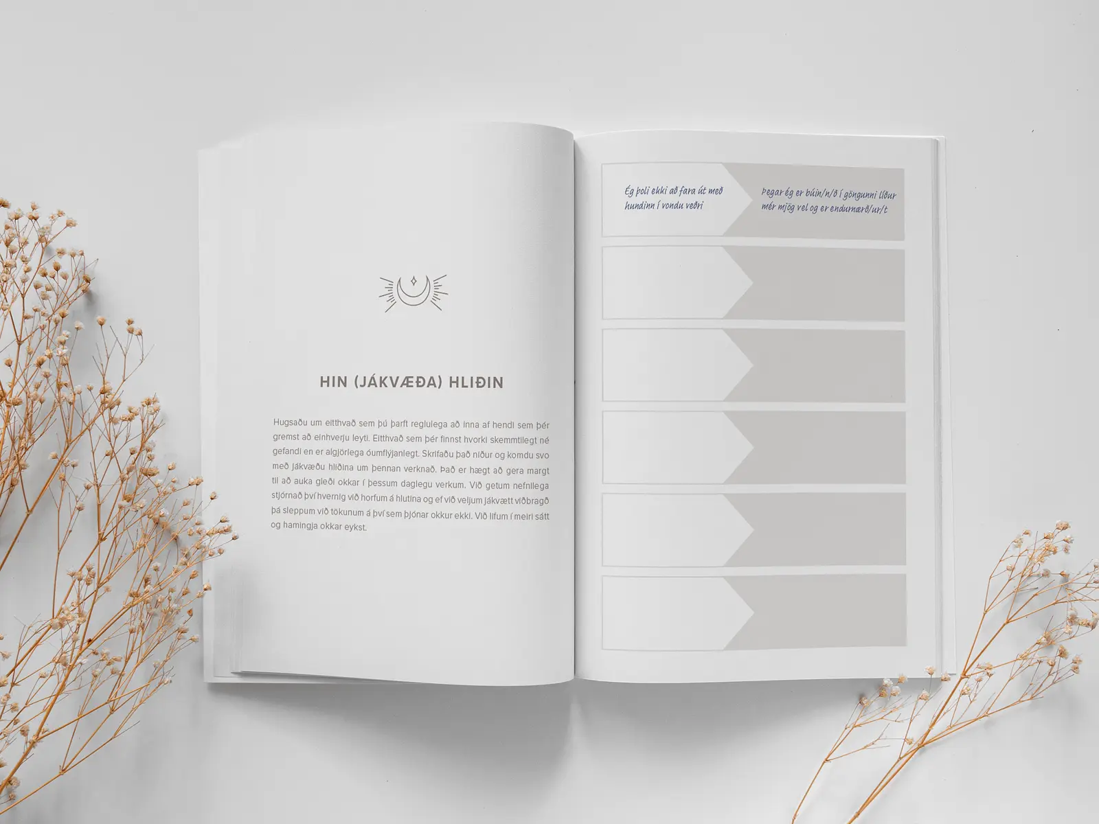 Þakklæti er ein jákvæðasta tilfinning sem við getum upplifað. Þegar þú skrifar reglulega niður það sem þú ert þakklát(ur) fyrir, beinir þú athyglinni að því góða sem þegar er til staðar í lífi þínu. Smám saman fer heilinn að taka betur eftir öllu því fallega og jákvæða – hann lærir að sjá gnægð í stað skorts. Þannig eflir þú hamingju, ró og vellíðan – og byrjar að laða meira af því góða inn í líf þitt. Þakklætisdagbókin er sköpuð til að styðja þig í þeirri vegferð.