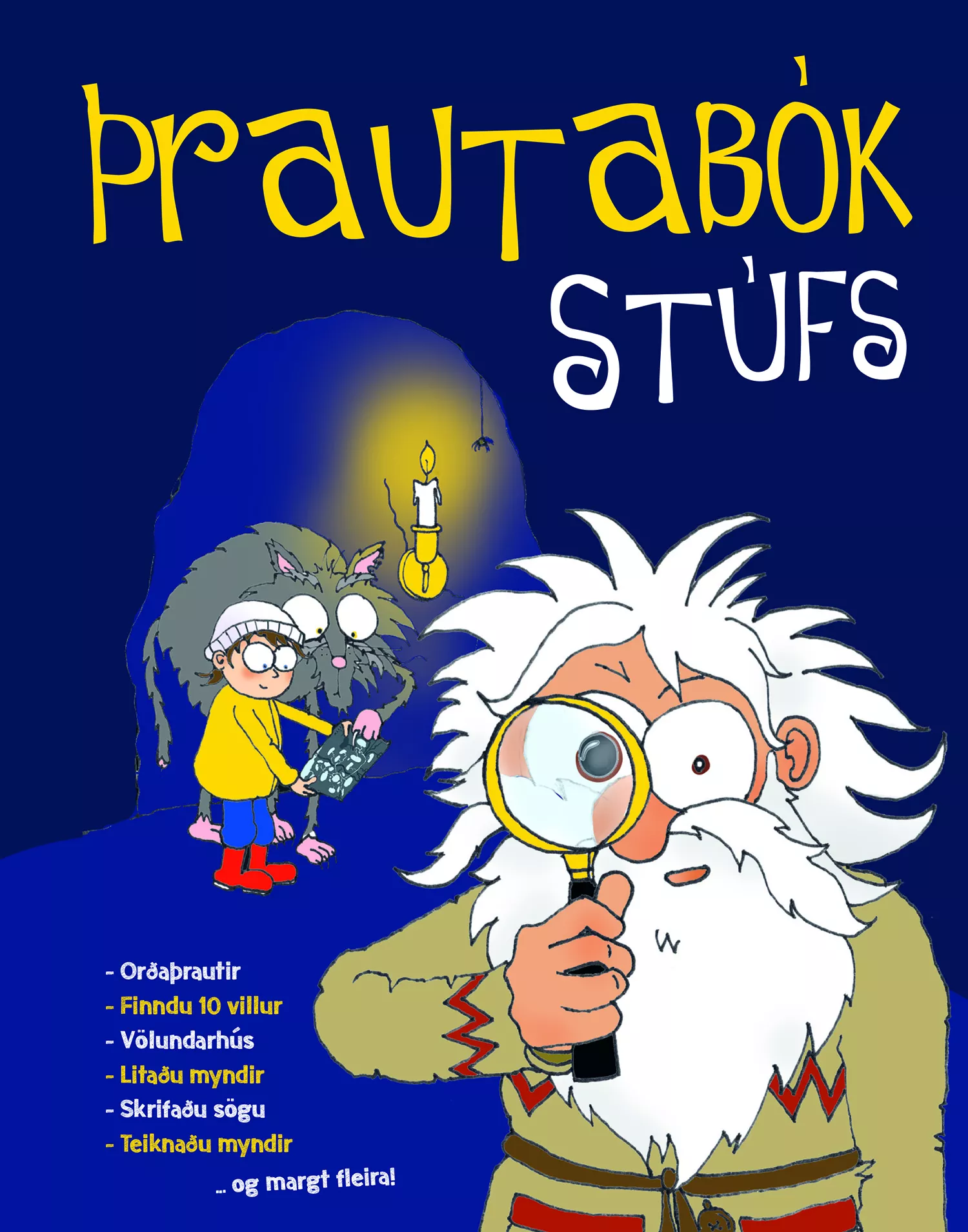 Stúfi finnst svakalega gaman aðleysa ráðgátur og þrautir. Í þessari bók eru einmitt alls konar þrautir sem þú getur leyst og myndir til að lita. Hér getur þú meira að segja skrifað þína eigin ráðgátu!